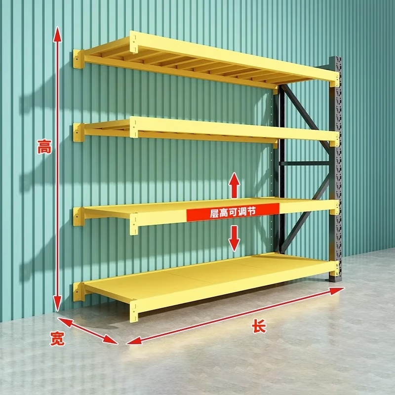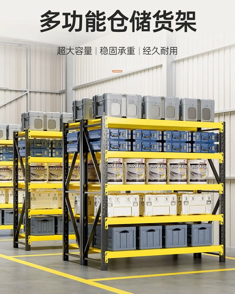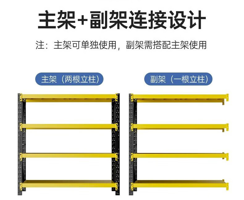 摩基货架置物架多层家用商用仓库储物架阳台地下室加厚承重储物铁架子 四层副架【黑黄色】 中型200*50*200 承重420kg