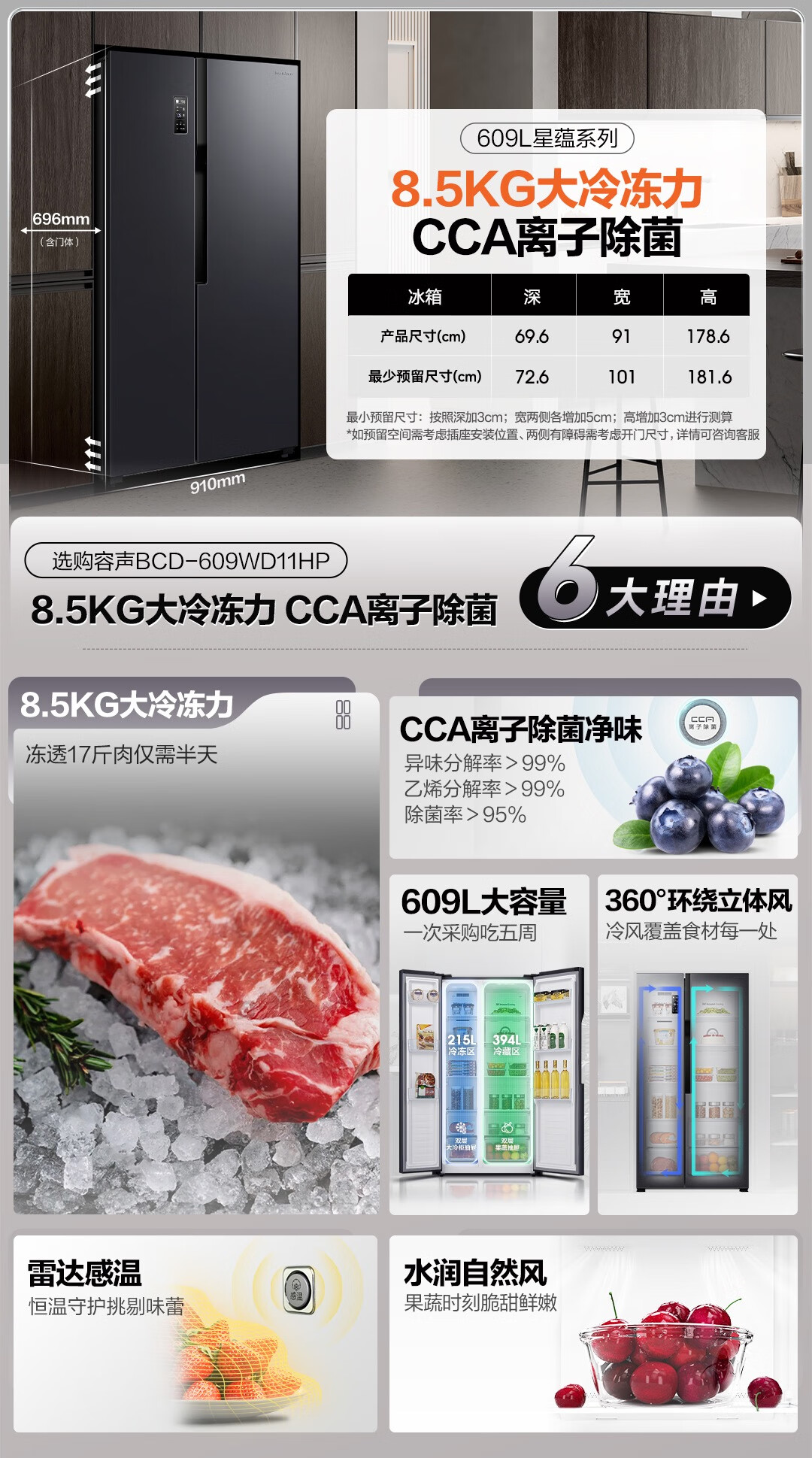 商品品牌:容声/Ronshen 商品货号:BCD-609WD11HP 商品库存:58