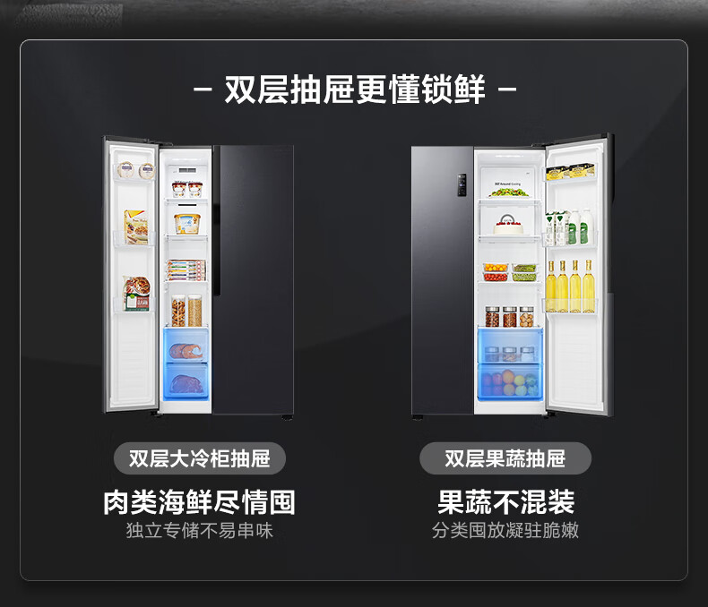 容声(Ronshen)离子净味609升变频一级能效对开门双开门冰箱无霜离子除菌BCD-609WD11HP大容量可嵌入