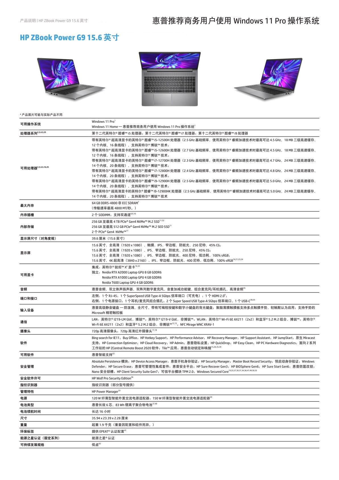 产品型号 :   HP ZBook Power 15.6 inch G9-9453B06200A