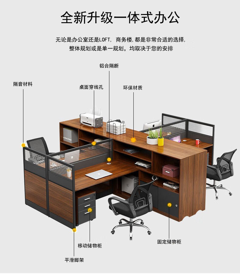 职员办公桌椅组合办公室家具46四六八人位财务卡座屏风工位电脑桌 7型三人位【带柜椅】