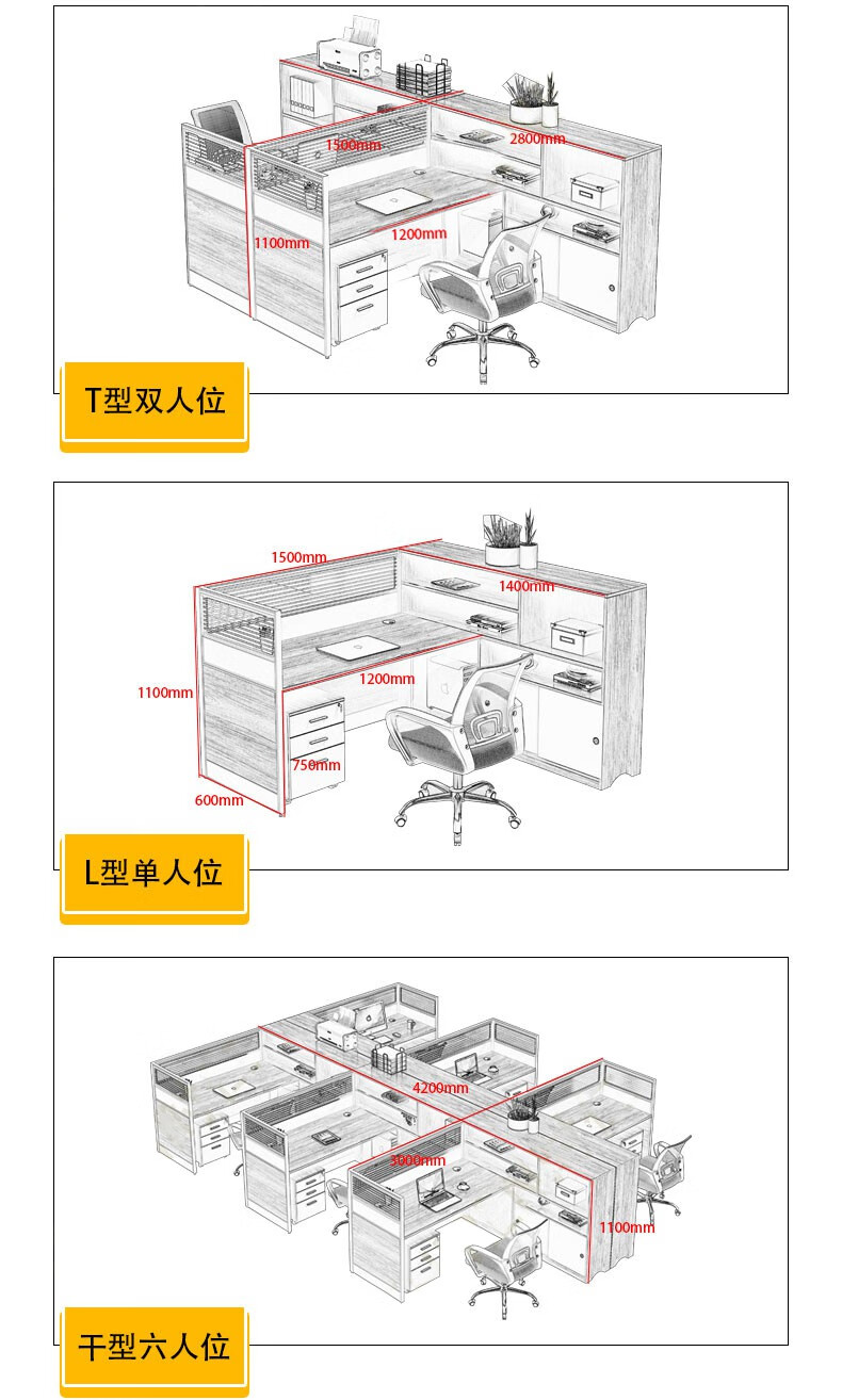 职员办公桌椅组合办公室家具46四六八人位财务卡座屏风工位电脑桌 7型三人位【带柜不带椅】