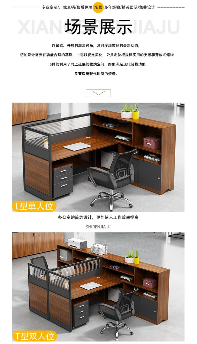 职员办公桌椅组合办公室家具46四六八人位财务卡座屏风工位电脑桌 L型单人位【带柜椅】