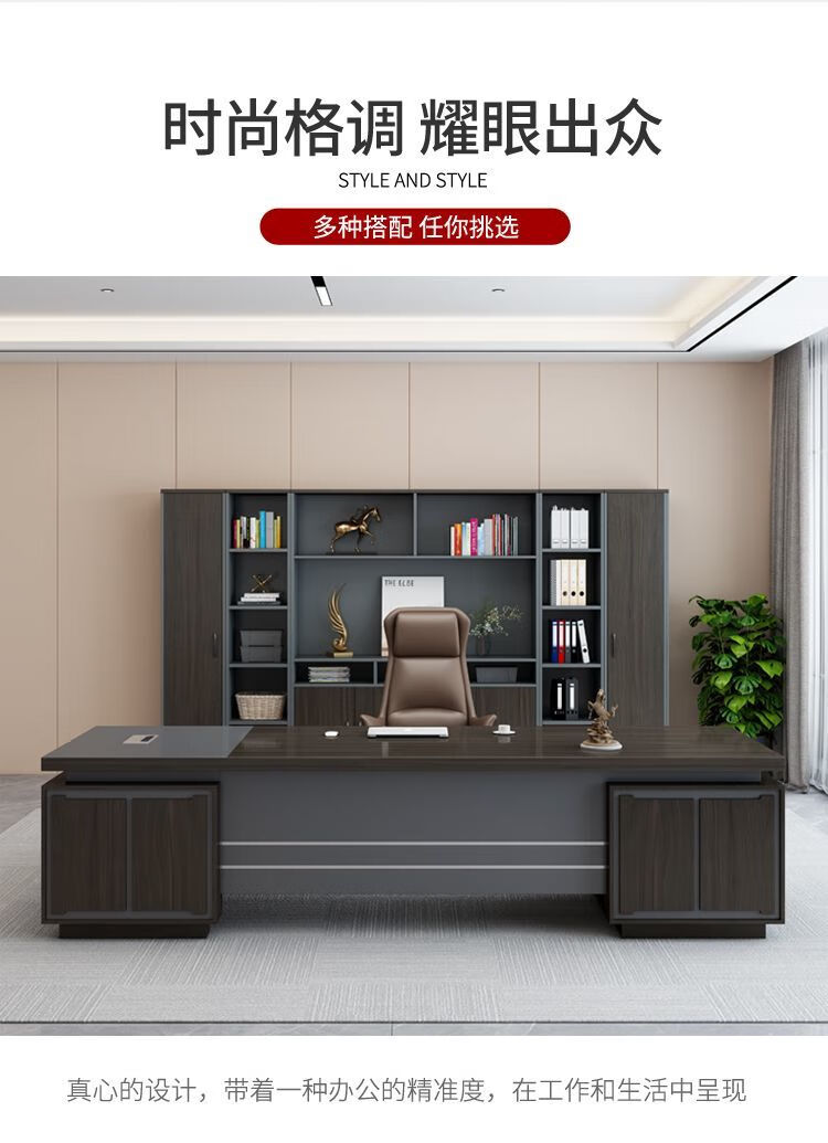 办公桌老板桌现代总裁桌经理主管桌董事长单人大班台办公桌椅组合 瑞士胡桃色 2.4米班台(双柜)+椅+8门柜