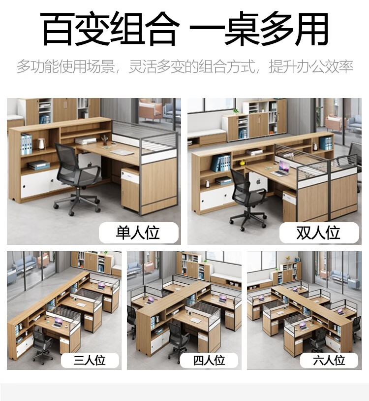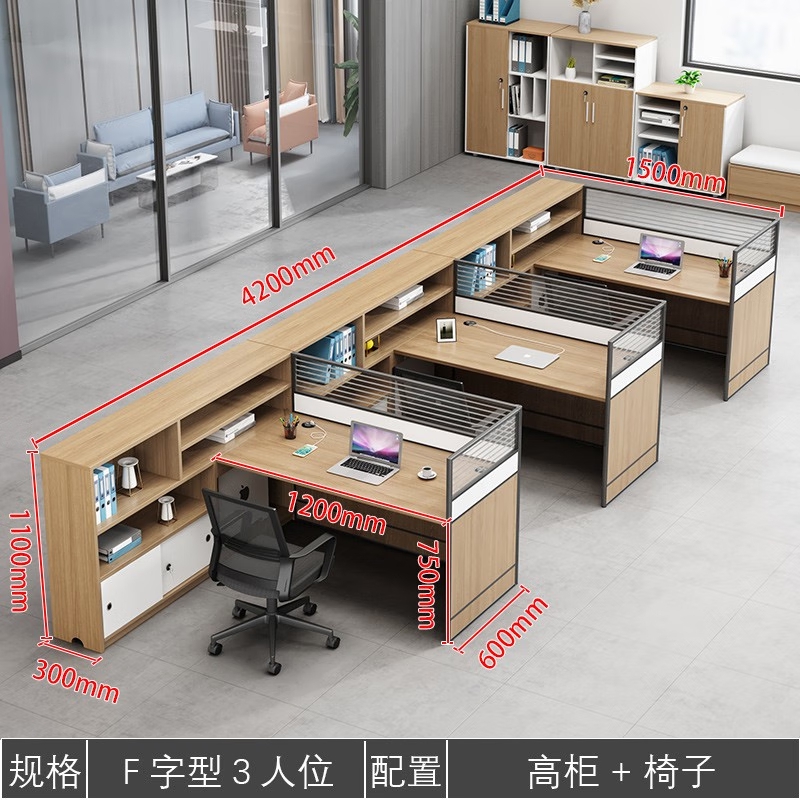 职员办公桌椅组合财务桌简约现代办公室办公家具屏风工作位员工桌 三人位+高柜+椅