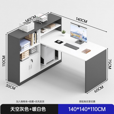 双人办公桌椅组合简约现代四六人屏风卡座职员电脑桌办公室员工位 【经典款左柜-单人位】天空灰色