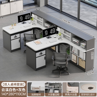 双人办公桌椅组合简约现代四六人屏风卡座职员电脑桌办公室员工位 【双人桌椅套装】F型右柜-暮夜灰