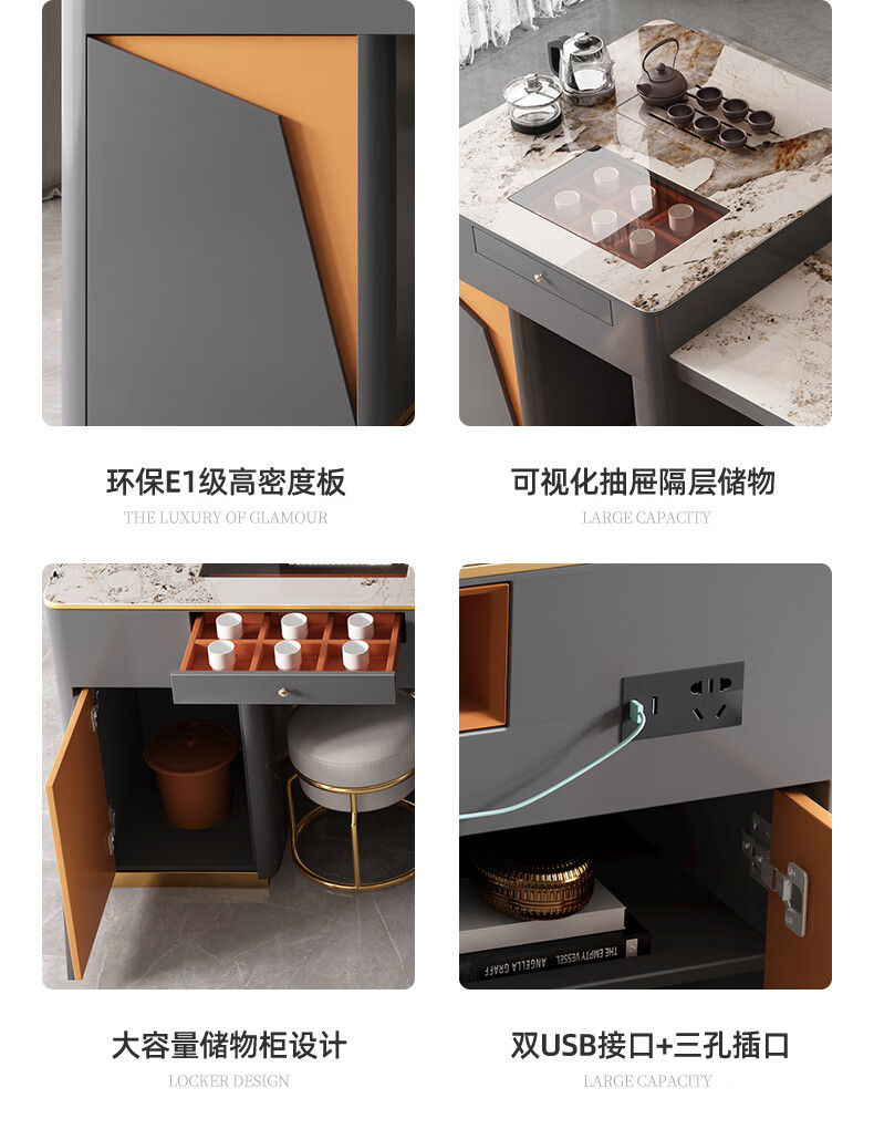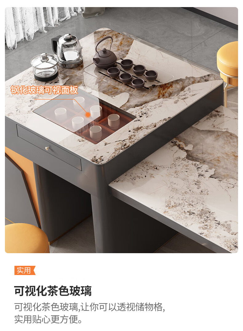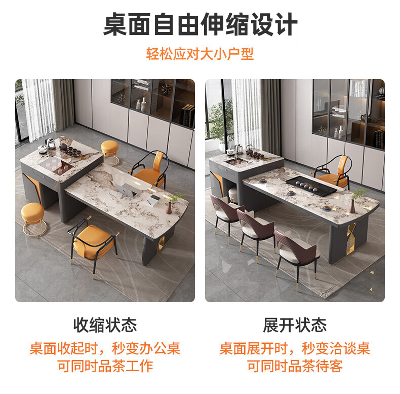伸缩茶台烧水壶一体桌现代轻奢岩板办公室泡茶桌椅子组合功能家用 2.1-2.5单茶桌