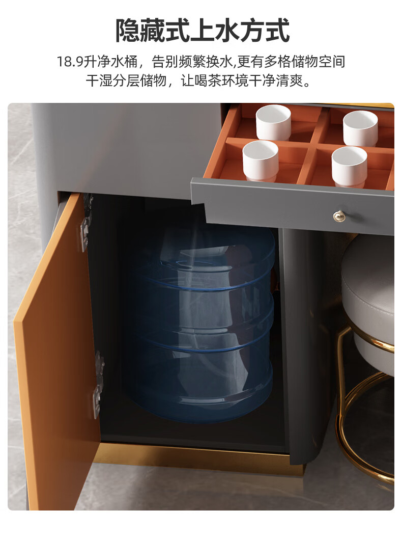 伸缩茶台烧水壶一体桌现代轻奢岩板办公室泡茶桌椅子组合功能家用 主人椅*1+客人椅*3