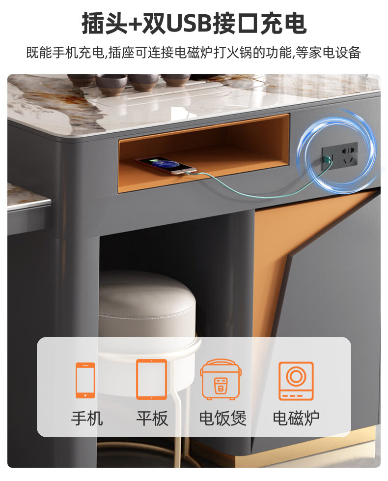 伸缩茶台烧水壶一体桌现代轻奢岩板办公室泡茶桌椅子组合功能家用 2.4-2.8茶桌+主人椅*1+客人椅*5
