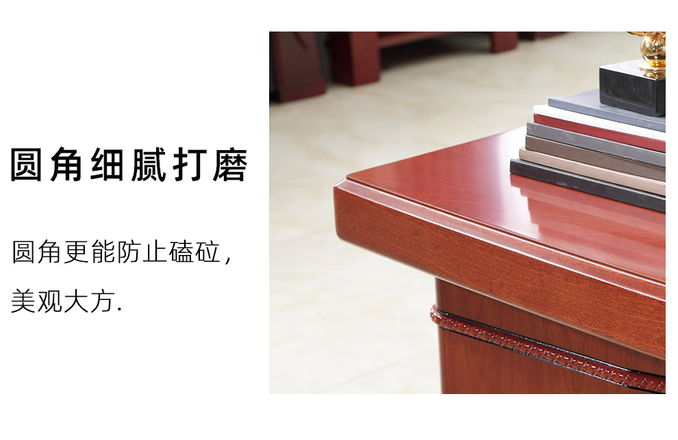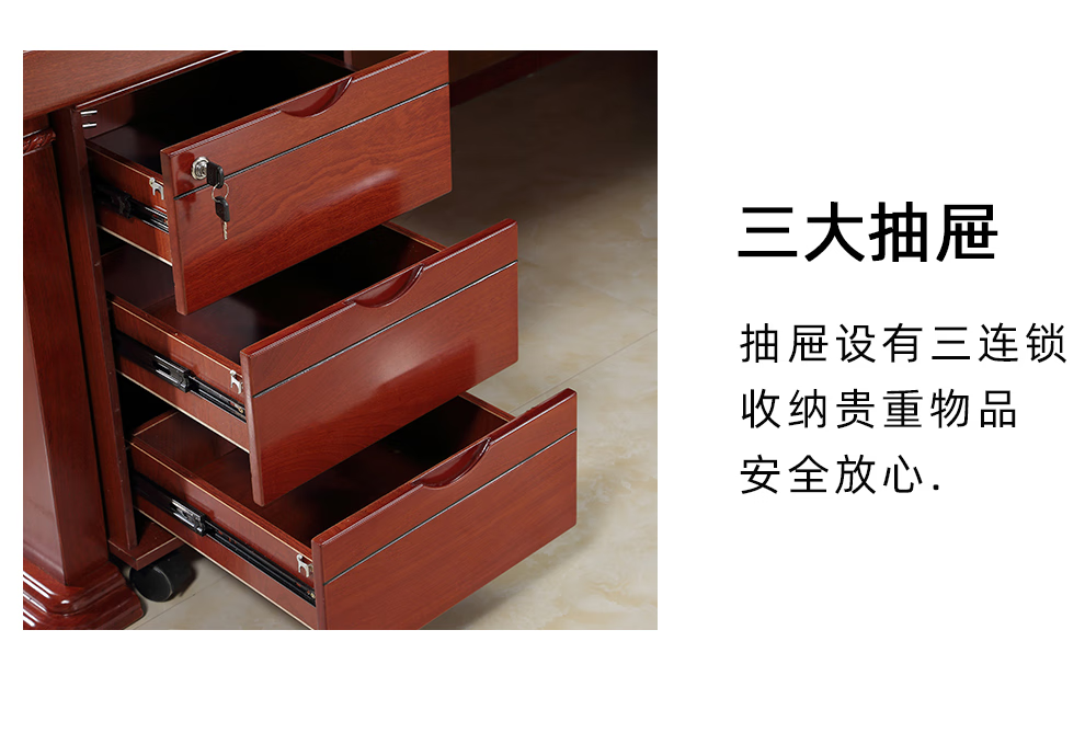 领导办公桌老板桌 中式传统贴实木皮大班台 办公室桌椅柜组合 2.4米班台 鸿运海棠红【颜色】