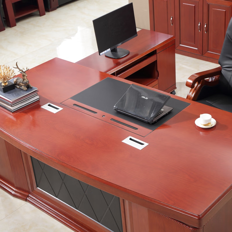 领导办公桌老板桌 中式传统贴实木皮大班台 办公室桌椅柜组合 2.0米班台 鸿运海棠红【颜色】