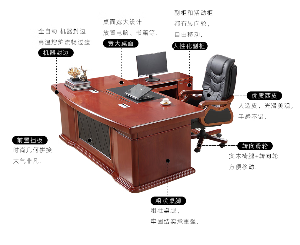 领导办公桌老板桌 中式传统贴实木皮大班台 办公室桌椅柜组合 2.2米班台+B椅 富贵胡桃色【颜色】