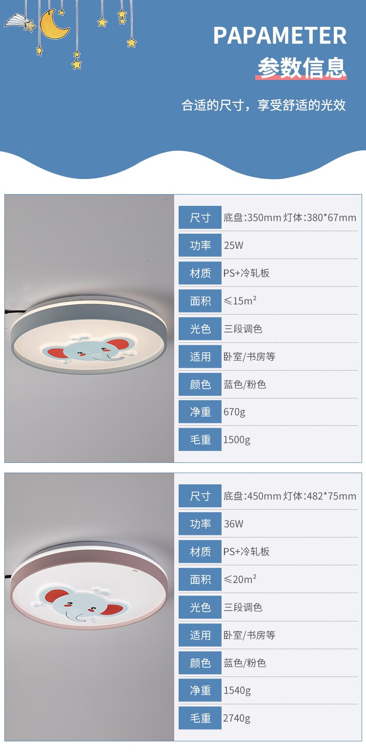FSL佛山照明吸顶灯LED卧室灯儿童灯书房灯具灯饰三段调色明轩25W蓝色