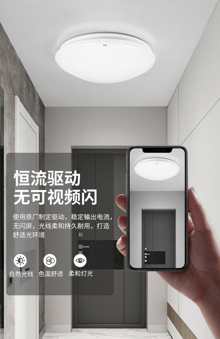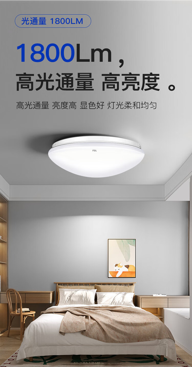 FSL佛山照明JY系列吸顶灯led卧室灯具书房阳台灯简易圆形24W白光I