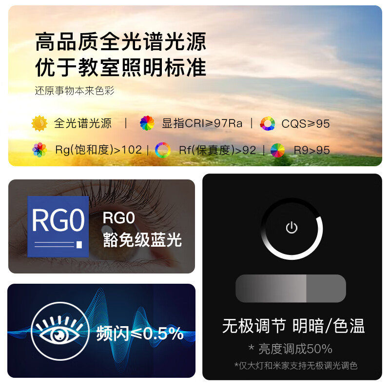 FSL佛山照明全光谱护眼吸顶灯高亮调色卧室灯低蓝光Ra97悦夕36W圆
