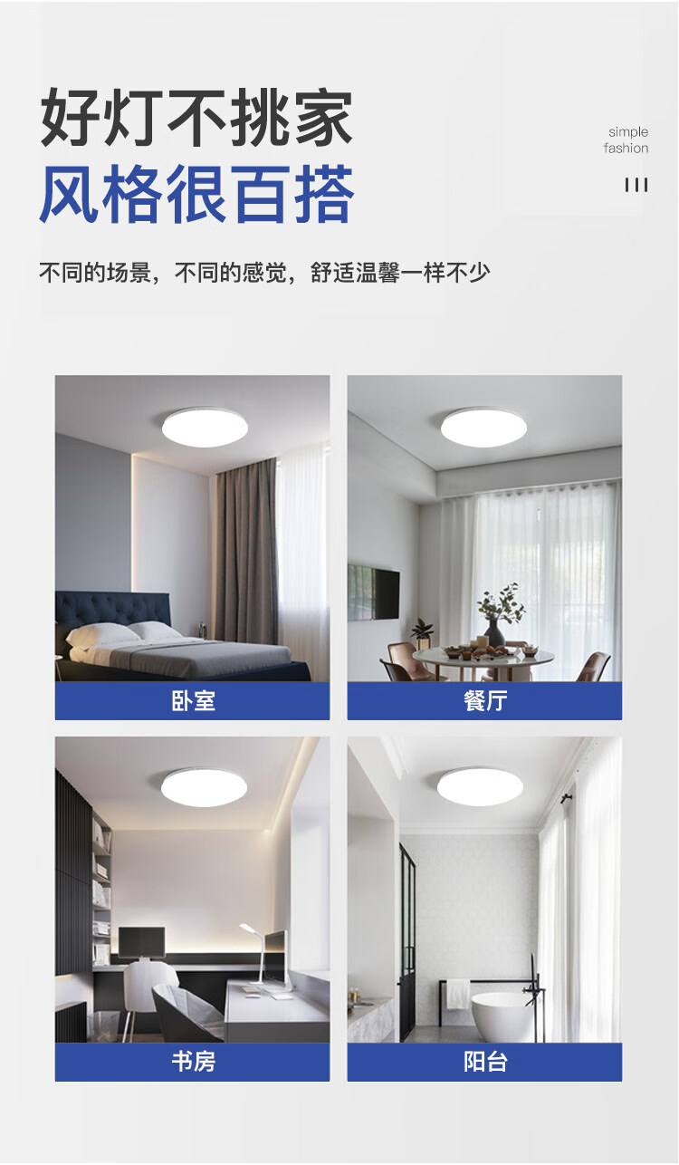 FSL佛山照明JY系列吸顶灯led卧室灯具书房阳台灯简易圆形24W白光G