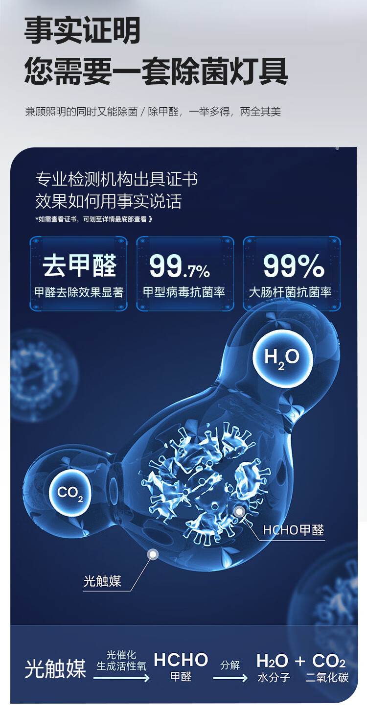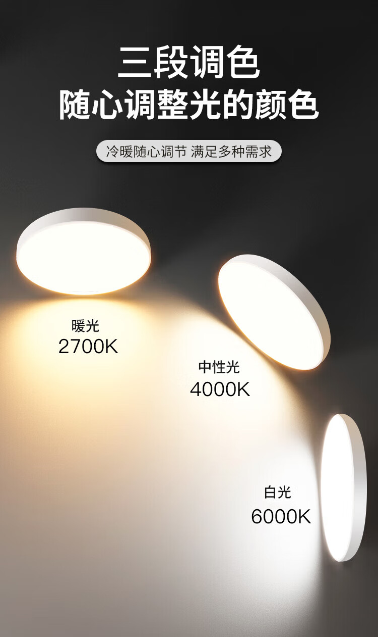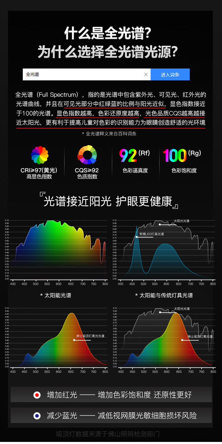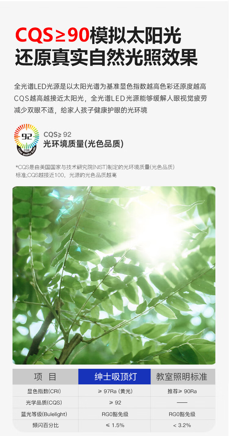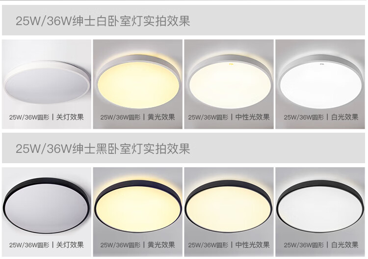FSL佛山照明全光谱护眼吸顶灯光触媒卧室灯豁免级蓝光Ra97绅士白36W