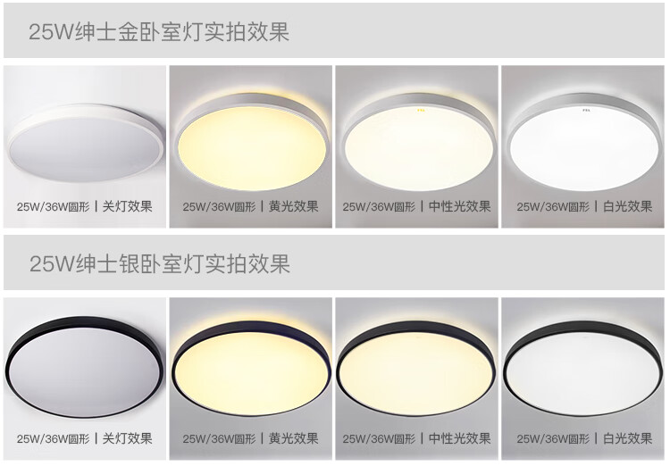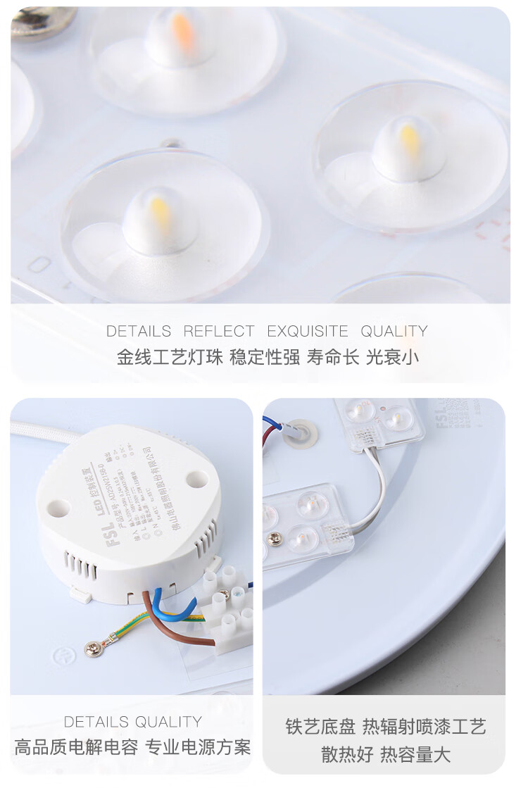 FSL佛山照明全光谱护眼吸顶灯光触媒卧室灯豁免级蓝光Ra97绅士黑25W