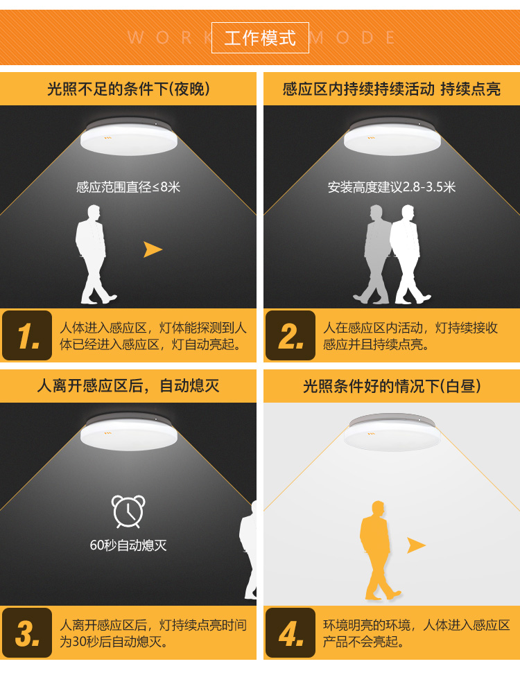 FSL佛山照明LED感应灯微波雷达人体感应走廊楼道过道阳台车库13W白光