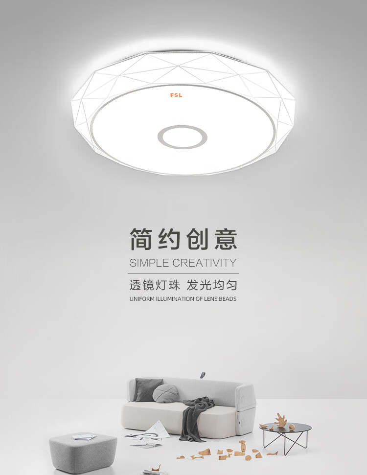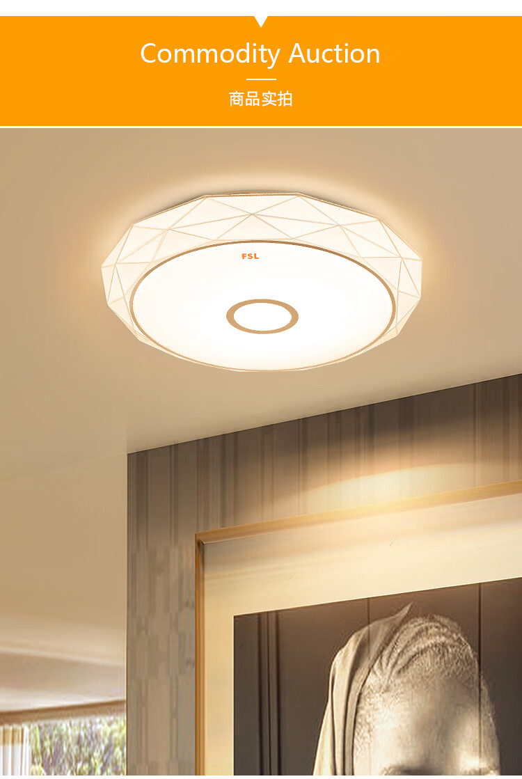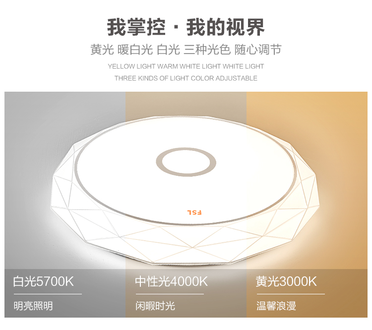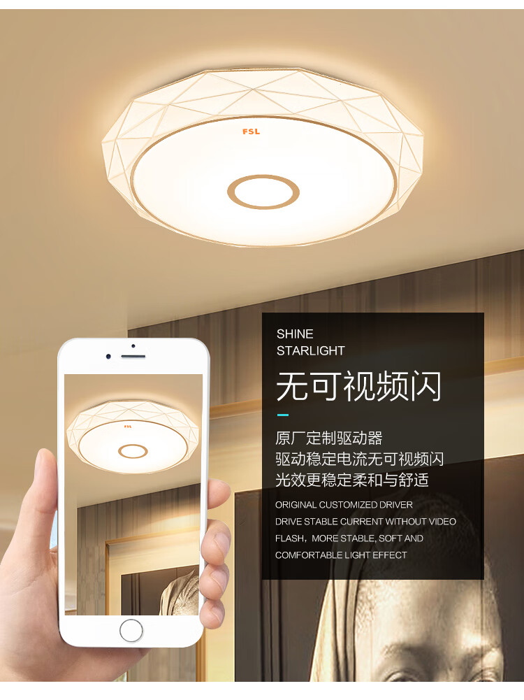 FSL佛山照明led吸顶灯卧室灯具灯饰现代简约儿童灯三段调色25W晶澈白