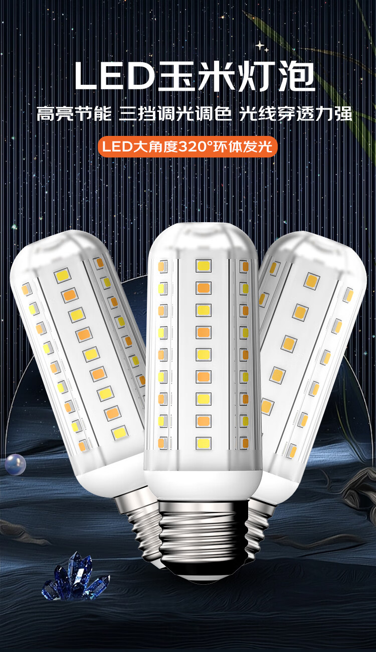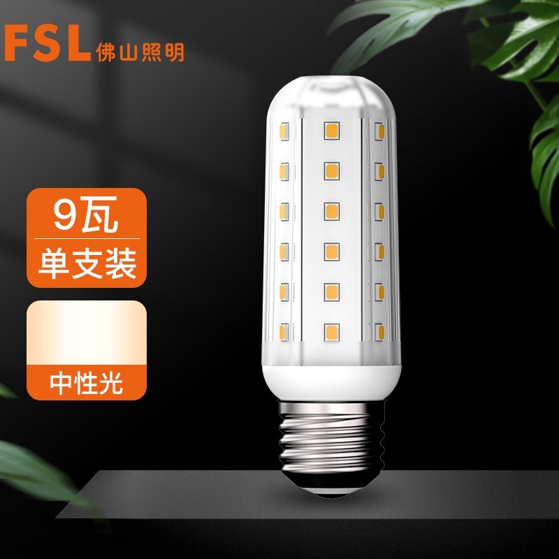 FSL佛山照明led灯泡E27大螺口玉米灯泡蜡烛泡水晶灯泡9W暖白光4000K
