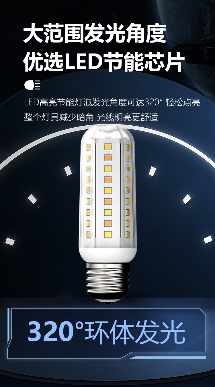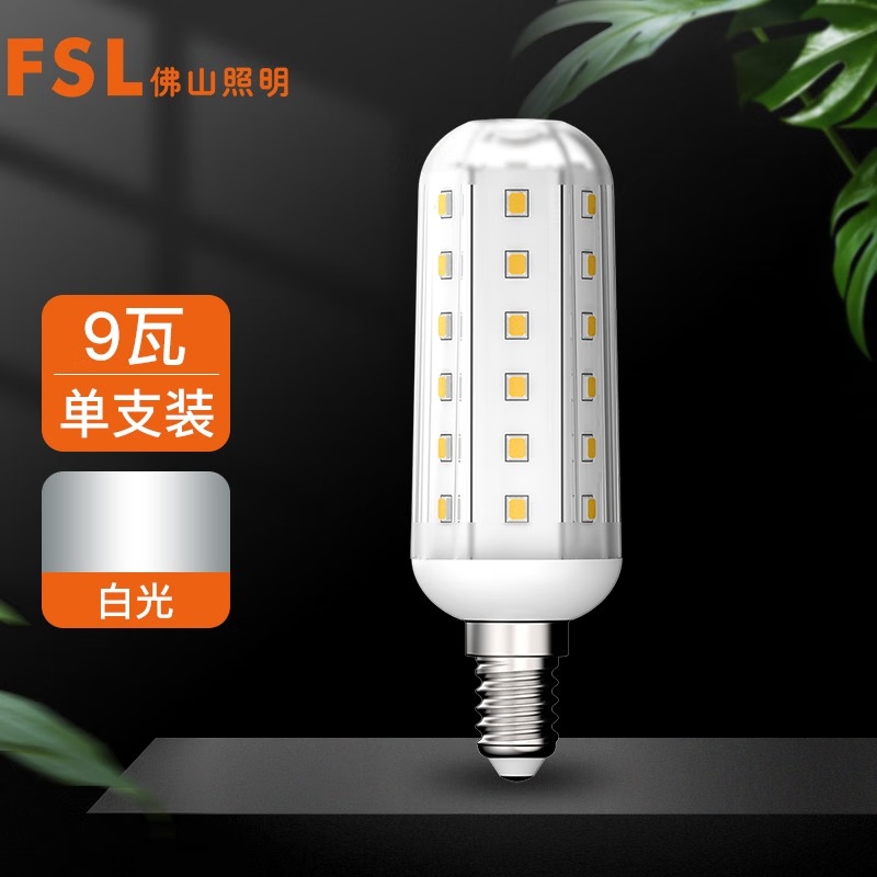 FSL佛山照明led灯泡E14小螺口玉米灯泡蜡烛泡水晶灯泡9W白光6500K