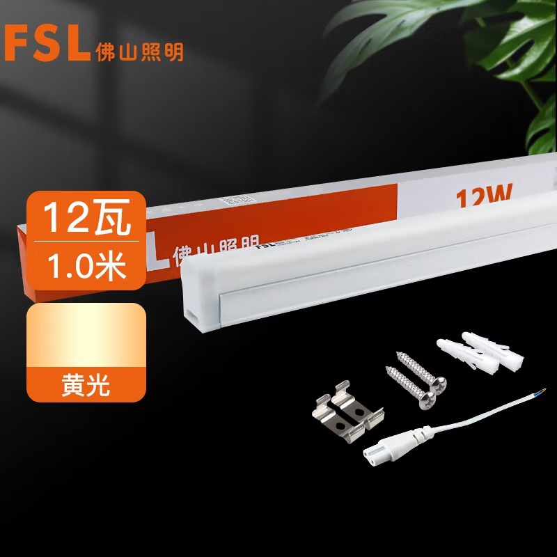 FSL佛山照明LED灯管T5支架一体化套装1米12W黄光3000K