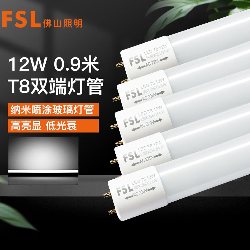 FSL佛山照明T8灯管LED双端长0.9米12W日光色6500K5只装
