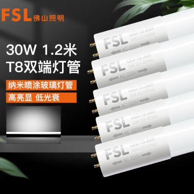 FSL佛山照明T8灯管LED双端长1.2米30W日光色6500K5只装